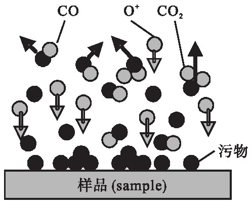 就反應機理來看, 等離子體清洗通常包括以下過程:無機氣體被激發為等離子態;氣相物質被吸附在固體表面;被吸附基團與固體表面分子反應生成產物分子;產物分子解析形成氣相;反應殘余物脫離表面。 典型的等離子體化學清洗工藝是氧氣等離子體清洗。下圖簡單描述了等離子體清洗的機理, 主要是依靠等離子體中活性粒子的“活化作用”達到去除物體表面污漬的目的。通過等離子體產生的氧自由基非?;顫? 容易與碳氫化合物發生反應, 產生二氧化碳、一氧化碳和水等易揮發物, 從而去除表面的污染物。