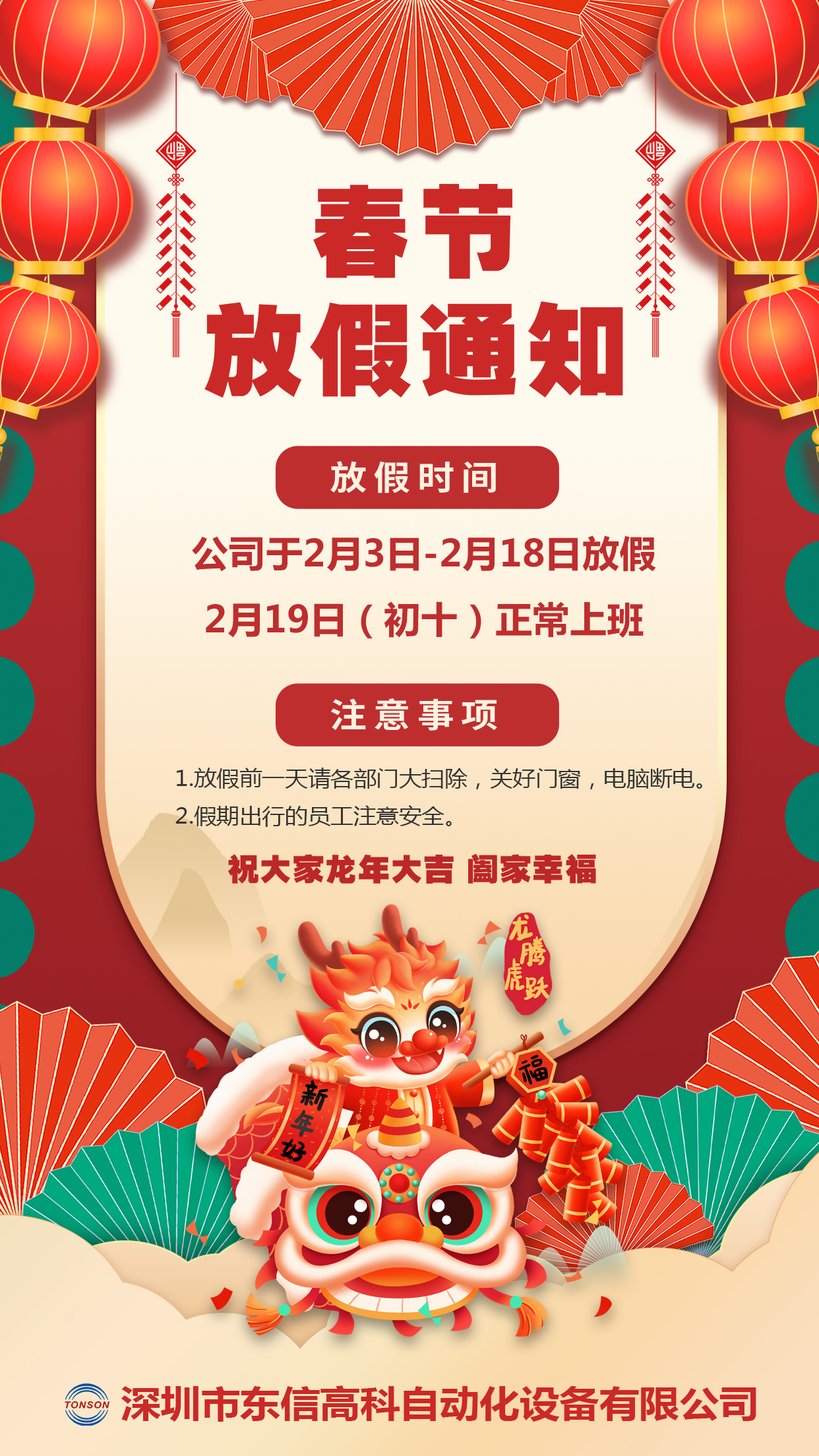 首頁 新聞資訊 公司資訊 東信高科2024年春節放假通知